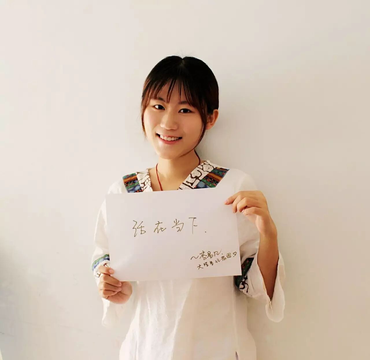 纪晓梦:这句鸡汤是我在刚接任大学生记者团团长的时候看到的,当时因为刚接任,对三个部门的事情感到很慌乱,在拍摄开学那期《哥抒己见》的时候,自己整个人都不好了,当时还没有纳新,我们17个大二的学生把所有经历都放在了开学迎新上,因为设备、剧本、军训拍摄、上课、道具、纳新宣讲、徒步旅行、微信等等需要在短时间内完成的事情我们每个人都很慌,当时的我感觉就是崩溃,我怕我当不好团长,我怕记者团毁在我手里。开学做不好,后面还能怎么办?