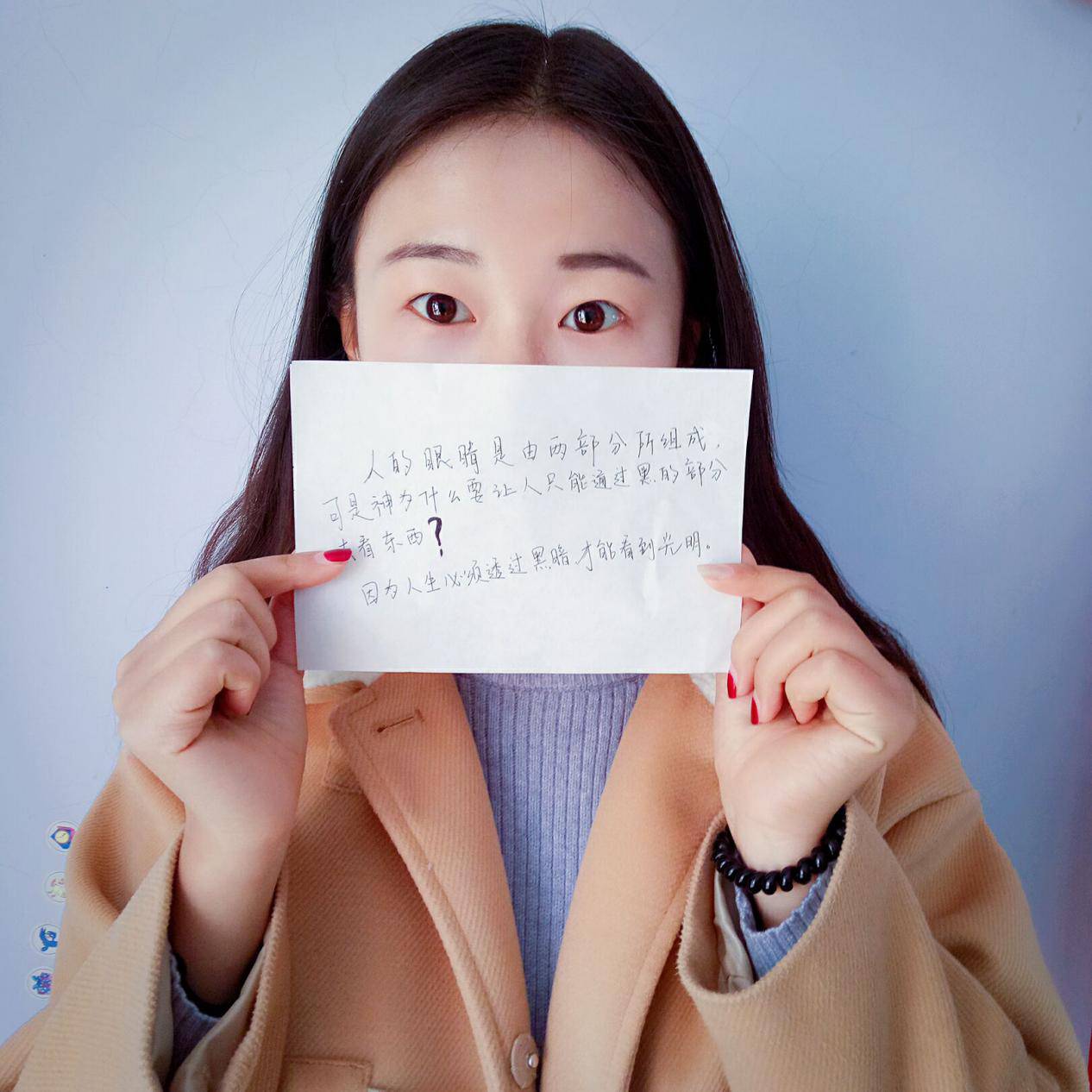【人的眼睛是由两部分所组成,可是神为什么要让人只能通过黑的部分看到东西,因为人生必须透过黑暗才能看到光明!】