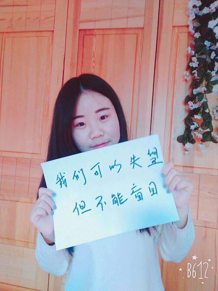 康晓花:这句话是高中时期班主任对我说的,我一直记在心里。因为这是我在高三考试过程中老师针对我的每次成绩而说出的一句话,他想告诉我的是:人可以失望,失望过后更多的会是期望;相反,人不可以盲目,一旦盲目,就会丢失了方向,很难在返回来。不管在面对什么事情时,我都会想到这句话,它不仅是老师对我的一句激励,更是我生活中的心灵鸡汤。