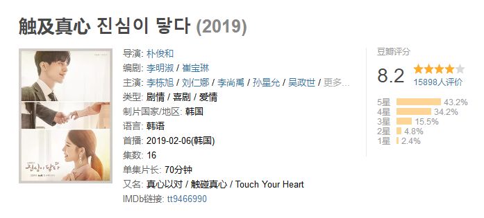 俗称是《鬼怪》2.0,“地狱夫妇”李栋旭和刘仁娜,在《触及真心》里再续前缘,持续发糖。这个剧是漫改爱情喜剧,轻松浪漫,看完好想请男女主马上!原地结婚!!!蟹蟹!
