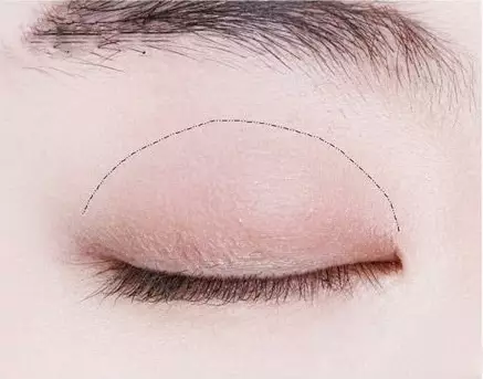 将淡棕色系的眼影沿着图中所示的范围,