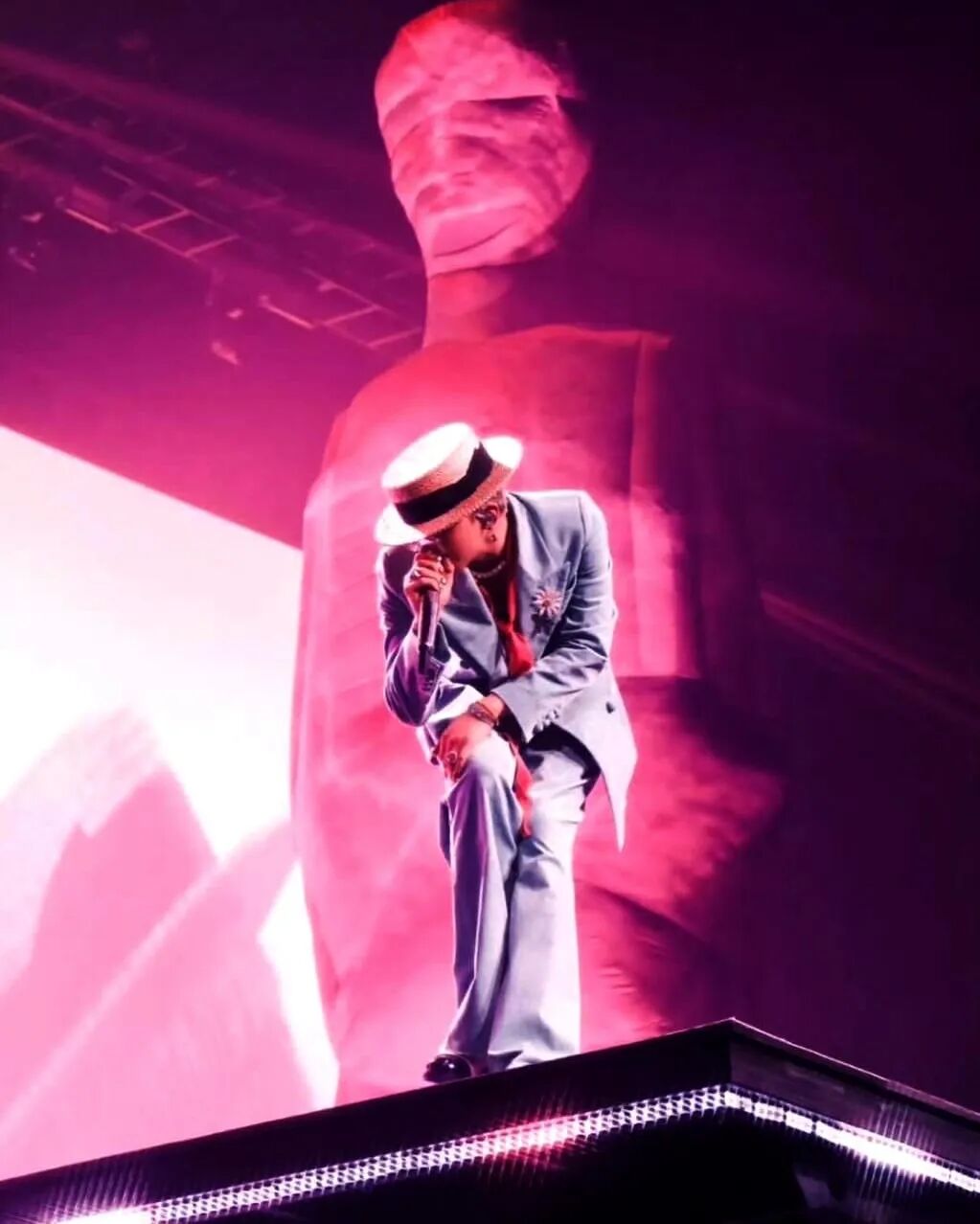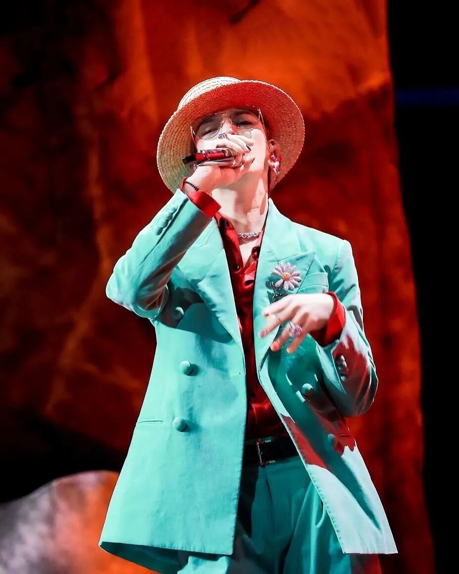 舞台上,他的造型大胆前卫,每一次亮相都如同一场时尚狂欢,令人惊艳。夸张发型、独特穿搭,再加上精致珠宝配饰,每一处细节都精心打磨,尽显他对时尚的极致苛求。