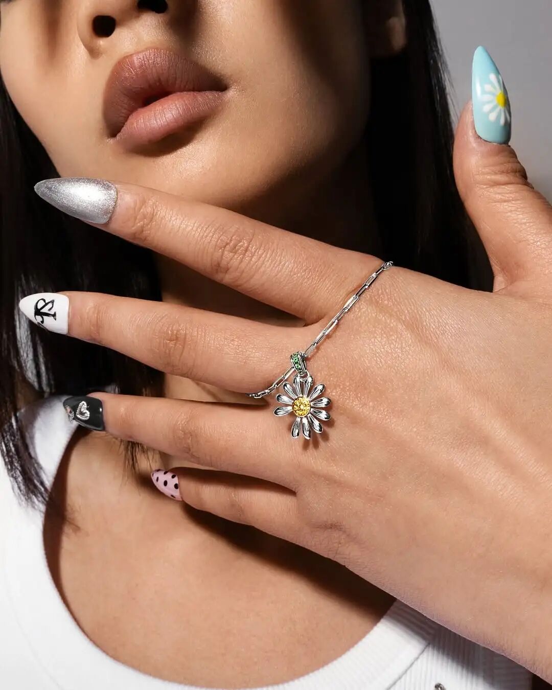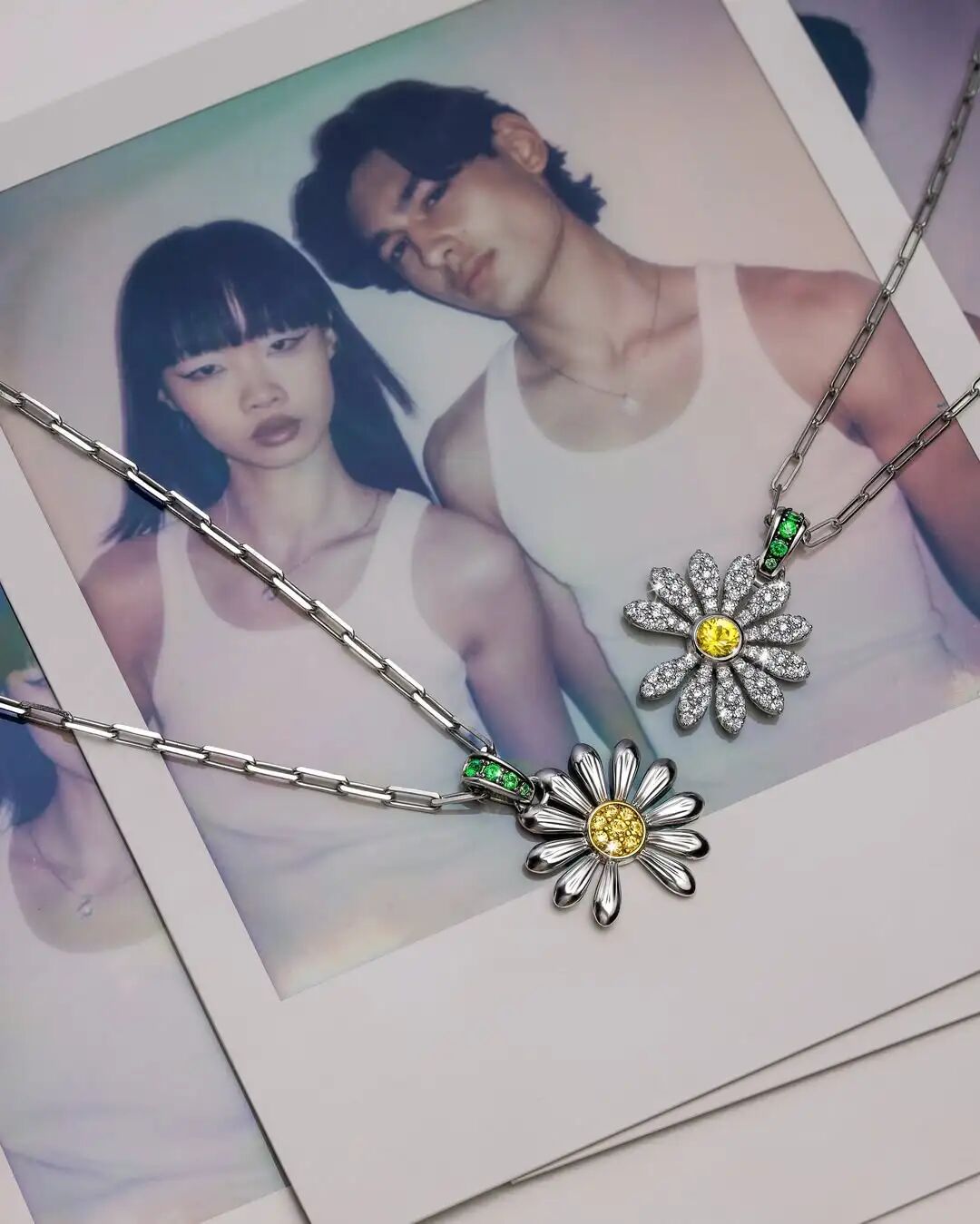 将他生命中最具个人意义的符号之一 —— 雏菊(Daisy)—— 打造成粉丝们每天都可以佩戴的饰品。精湛的工艺与GD独特的世界观融合,呈现出对比、原始质感与创意自由并存的作品。最终成品是一个1.7厘米的雏菊吊坠,搭配定制银质回形链。