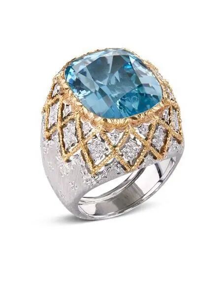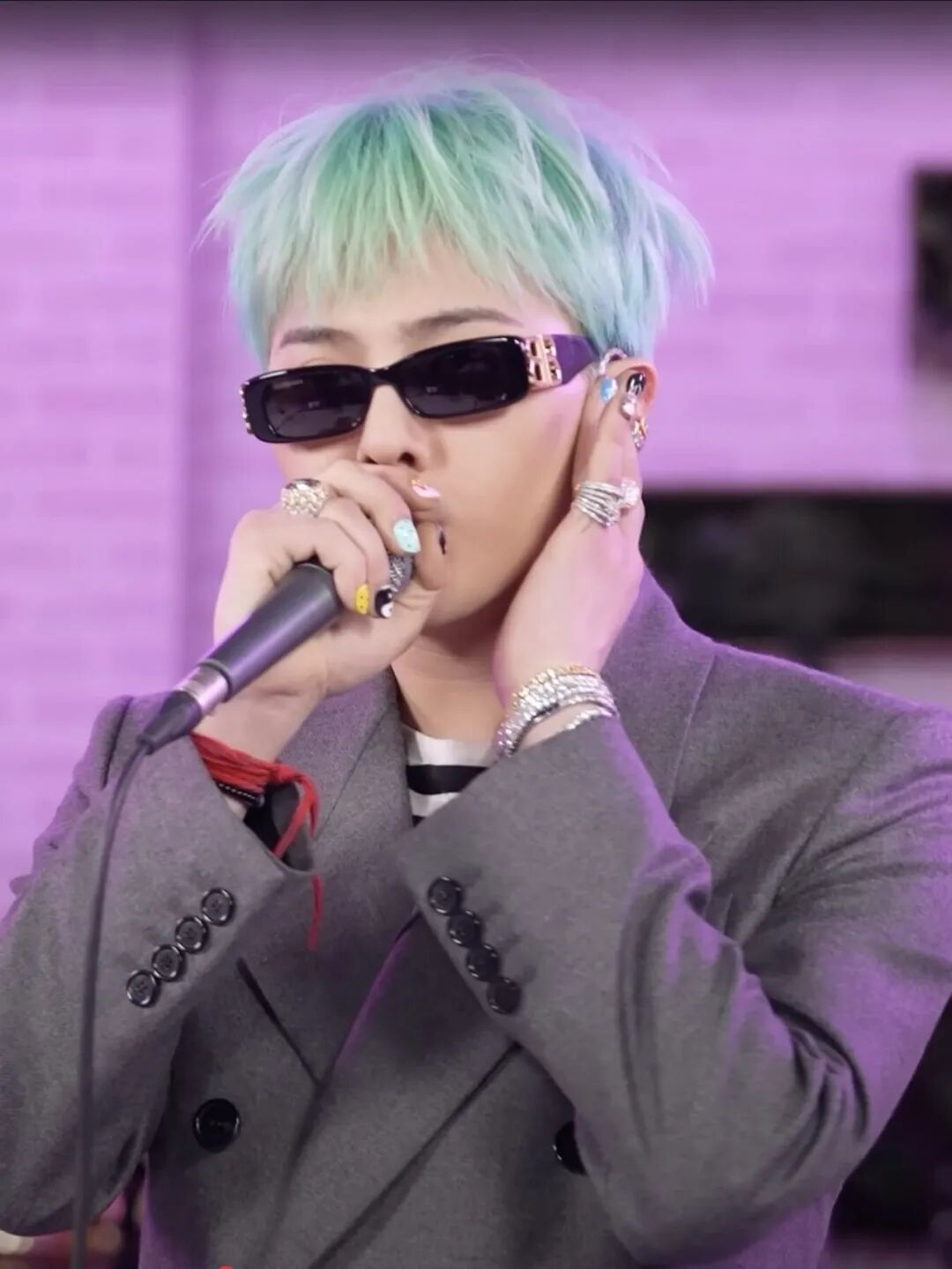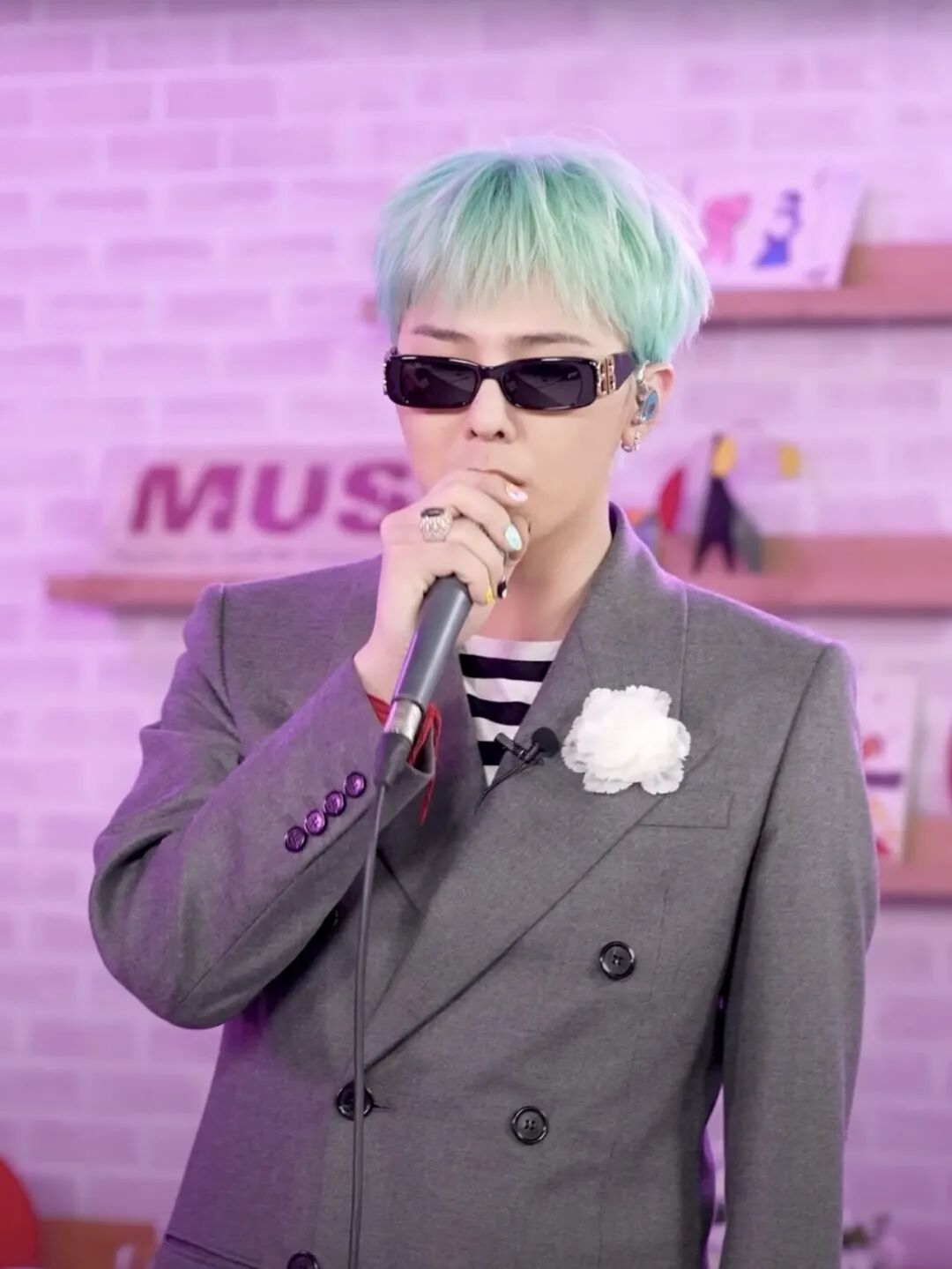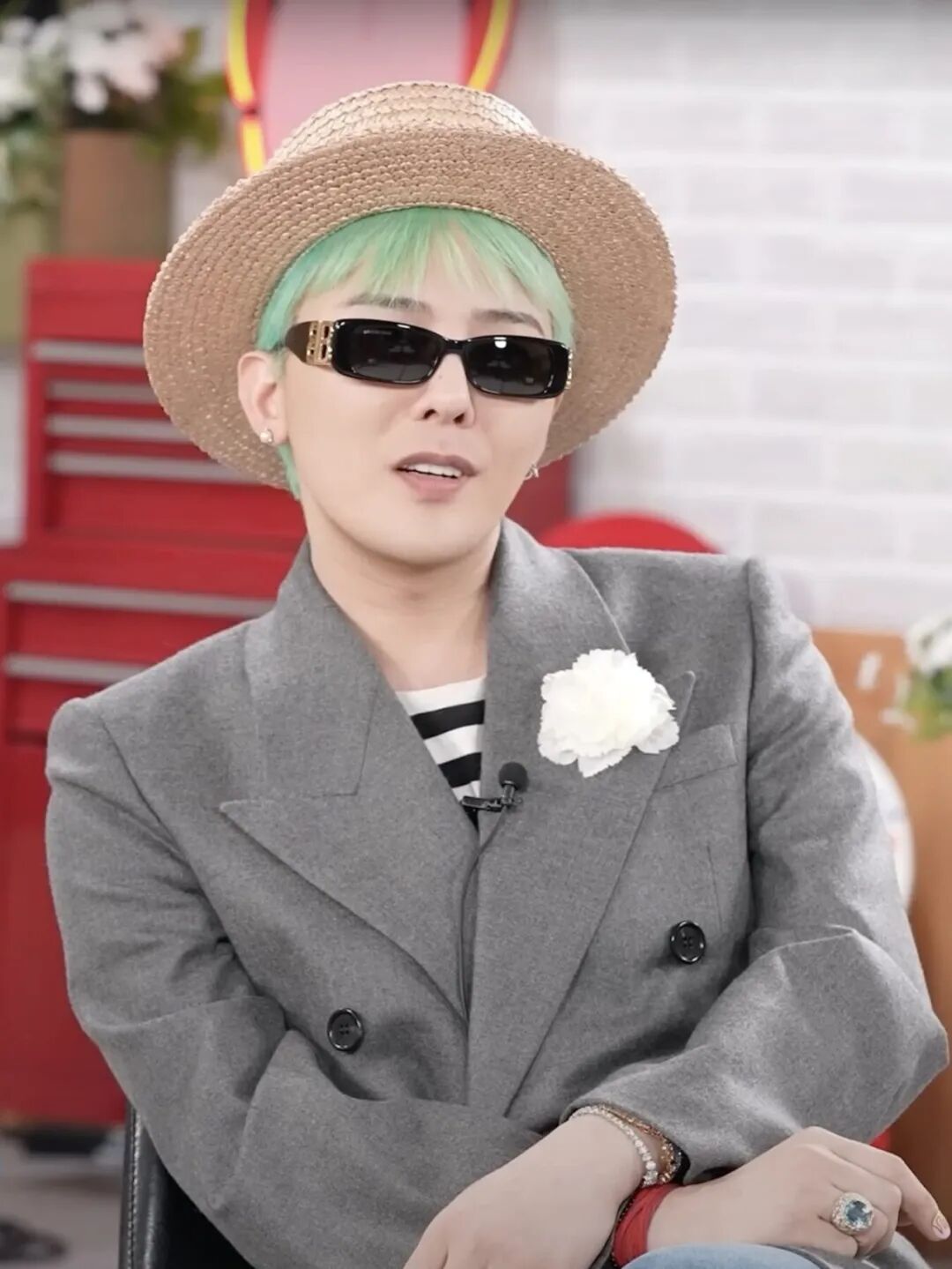 此外,在出演IU的YouTube《IU’s Palette》节目时,GD佩戴的Buccellati Colored Cocktail系列戒指为灰色西装造型添上了一抹夺目亮点。