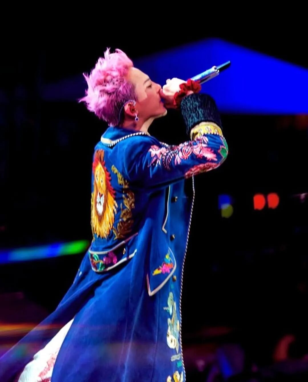 在洛杉矶举办的《Head In The Clouds》音乐节舞台上,GD以蓝色刺绣大衣与Nudo高级珠宝系列Tanzanite耳环搭配,视觉效果抢眼。
