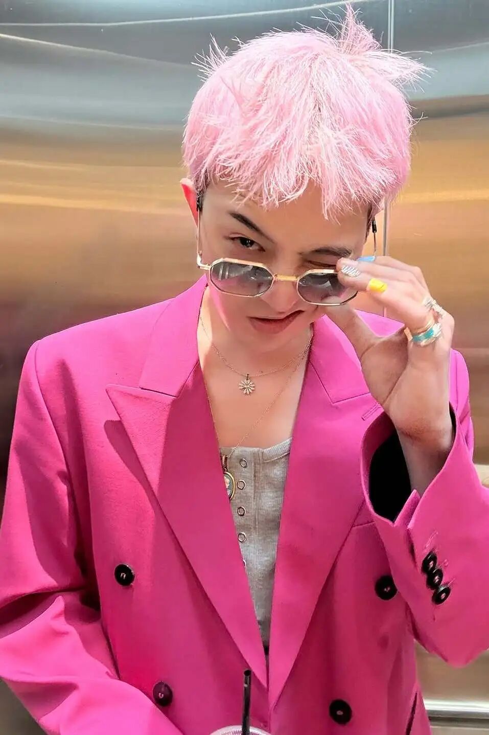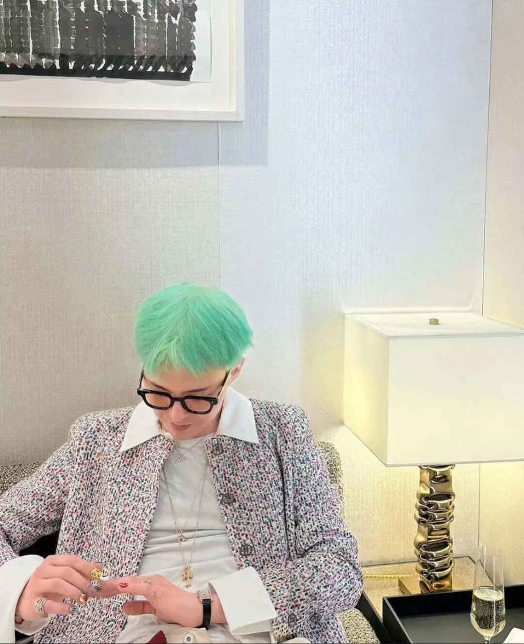 此外,Chrome Hearts的戒指和镜框也是GD的心头好。它们设计大胆而独特,充满了叛逆的气息,进行混搭或是单独佩戴,展现简约的个性,营造视觉冲击力,彰显出他独特的时尚态度。