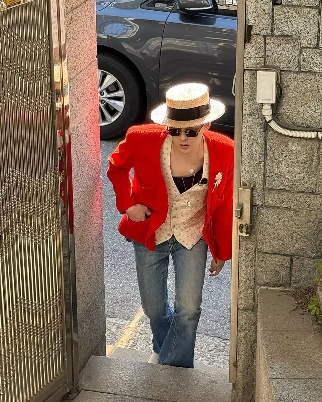 在「Innovate Korea 2025」论坛上,GD凭借出众衣品成焦点。他身着长袍,内搭西装与针织格纹背心。配件上,草帽搭配墨镜,把“睡袍风”穿进正装场合却毫无违和,GD堪称独一份!他超缤纷美甲旁,Boucheron的戒指与耳环超吸睛。
