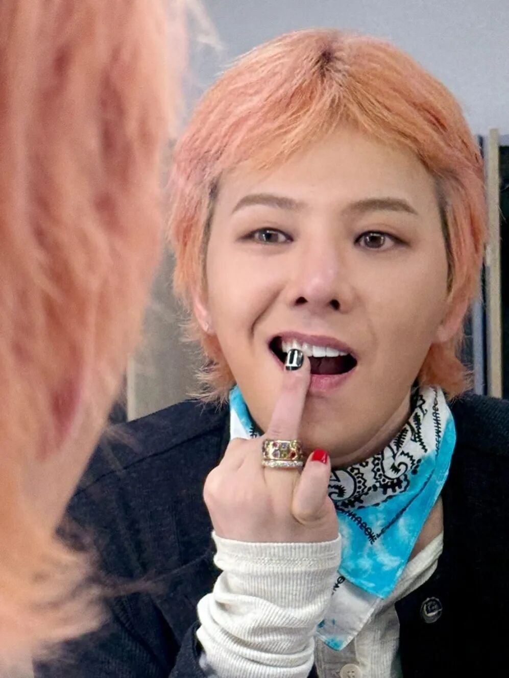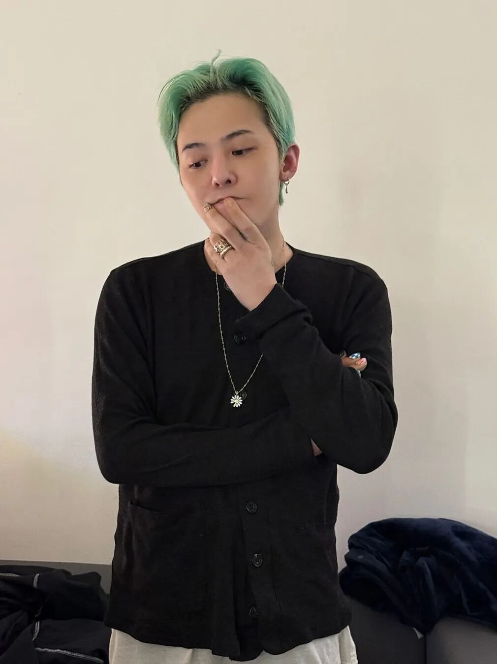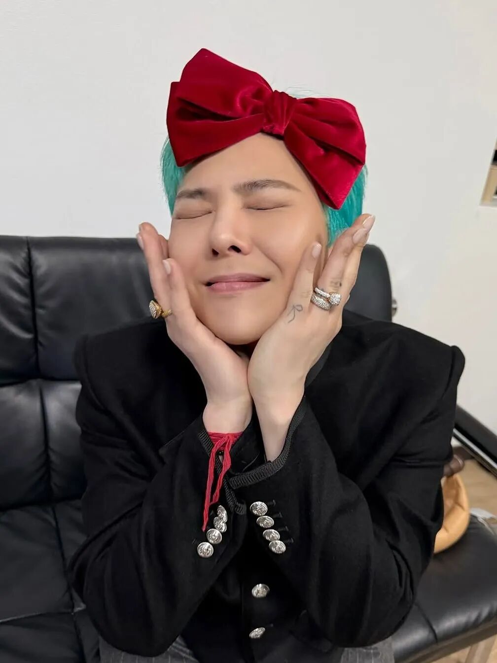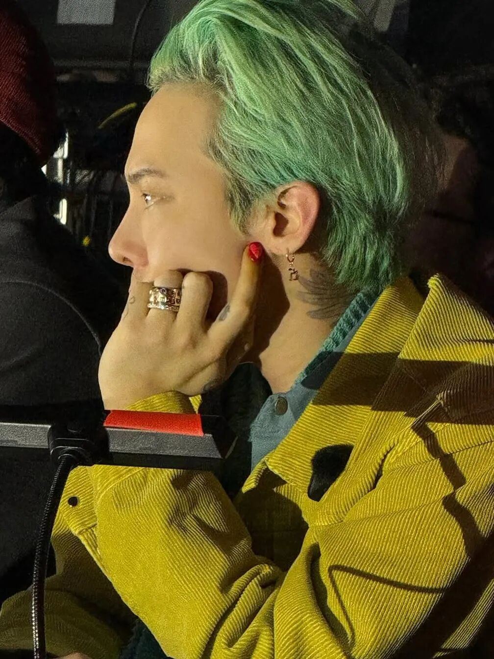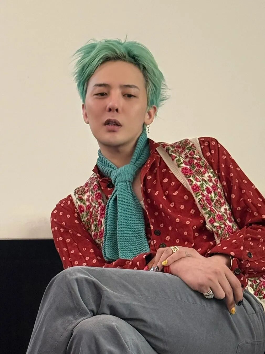 GD超爱绿松石色,围巾配饰,发色,美甲,统统搞一遍,当然还有FRED的绿松幸运尾戒在细枝末节上都有体现。贵气又叛逆的小众高奢堆叠珠宝,就是他诠释自我的态度。