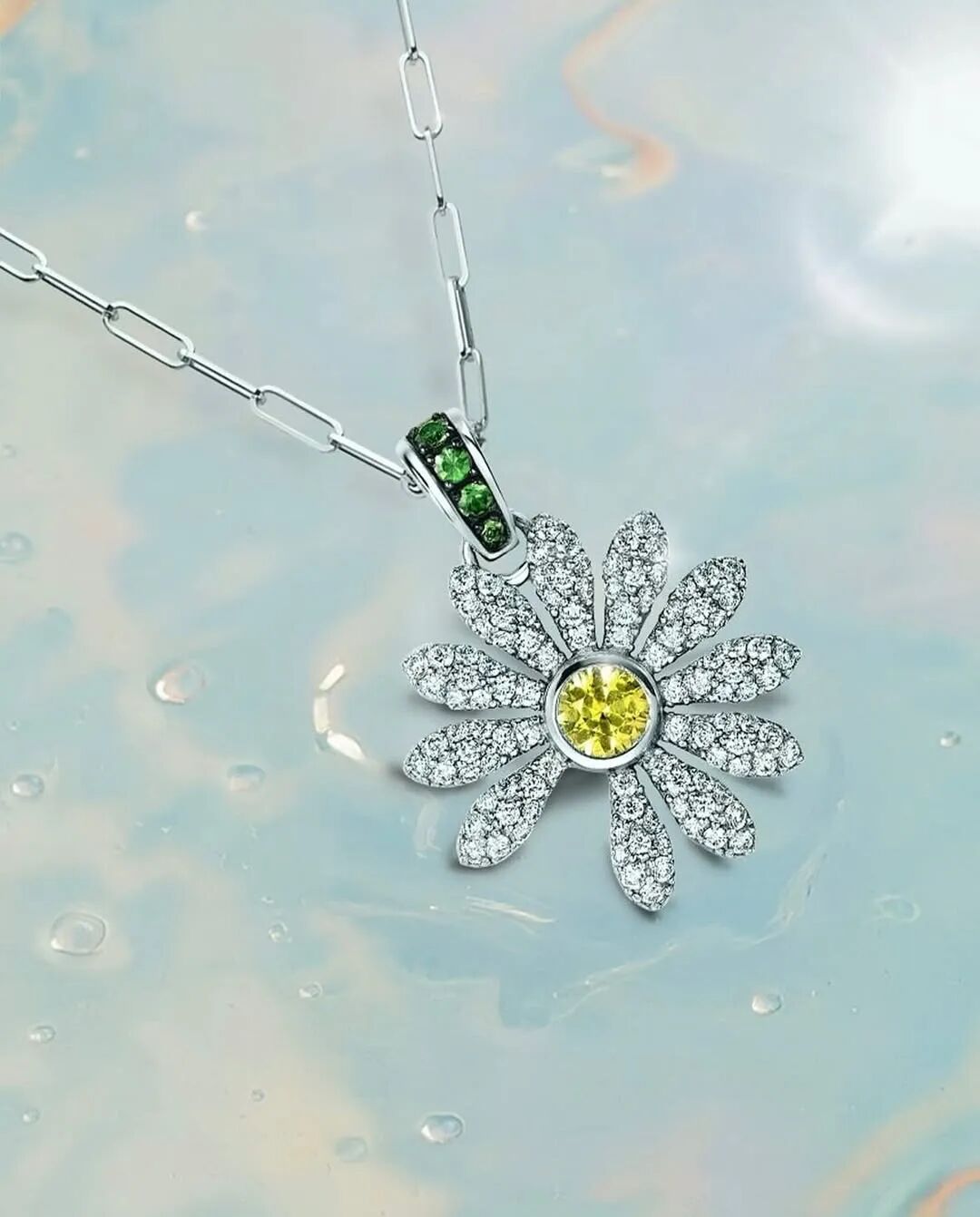 另一款则是黄钻铺钻吊坠,以一颗鲜彩黄钻为主石,镶嵌于18K白金之中,搭配白钻铺镶与珍贵绿色沙弗莱石,璀璨夺目,尽显高贵气质。这两款项链一经推出,迅速在时尚圈和粉丝群体中引发了抢购热潮。