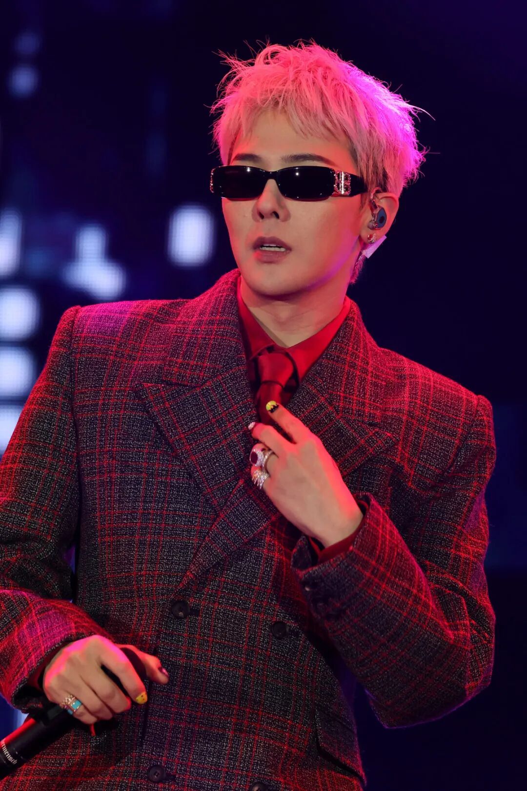在舞台上,GD更偏爱选择大体积的戒指,展现他鲜明的个人风格。无论是沉稳的格纹西装,还是充满个性的蓝绿色双排扣西装,Pomellato Nudo红碧玺戒指都游刃有余地提升整体造型的层次感与奢华感。