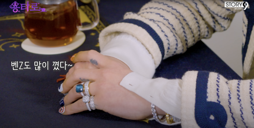 GD在YouTube综艺《郑亨敦的无题TV》中佩戴的Nudo Aquamarine海蓝宝石戒指,呼应GD轻盈自在的姿态。