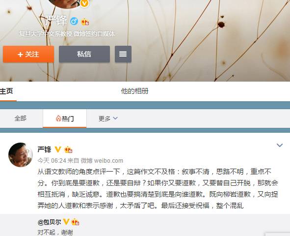 昨天晚上,包贝尔也发了一条长文,又是道歉又是感谢