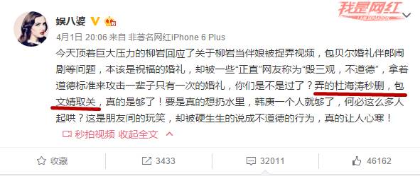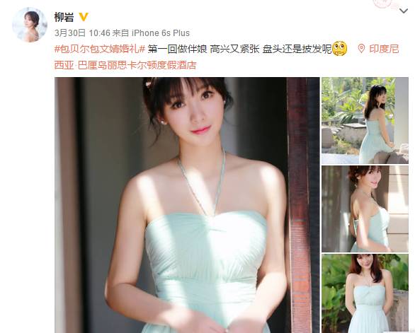 3月30日包贝尔婚礼上柳岩当伴娘差点被扔水里的事情还在持续发酵。