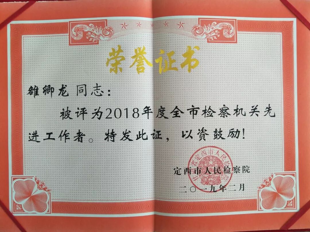 雒卿龙同志怀着对检察事业的满腔热忱,把自己的聪明才智和奉献社会的信念竭力转化成促进法律公平正义的正能量,全身心坚守在平凡的工作岗位上。紧紧围绕执法办案和全院检察工作大局,求真务实、严谨细致、行动迅速、团结协作,积极发挥办公室综合协调、参谋助手、办文办会、后勤保障作用,有效保证了执法办案和各项检察业务工作的顺利开展。