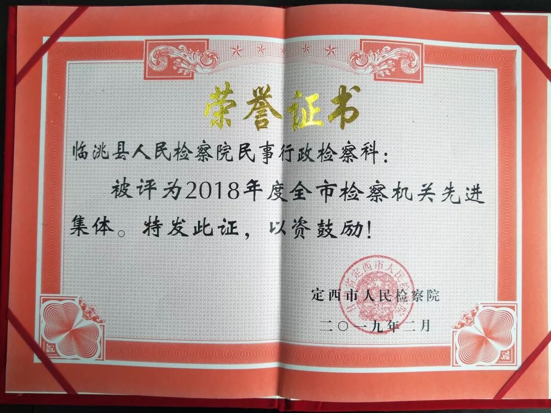 2018年,临洮县院全面加强各项法律监督工作和自身建设,以司法办案为中心,在忠实履行法律监督职责方面涌现了出许多忠于职守、爱岗敬业、无私奉献的科室和个人,为全院树立了榜样,起到了很好的引领示范作用。