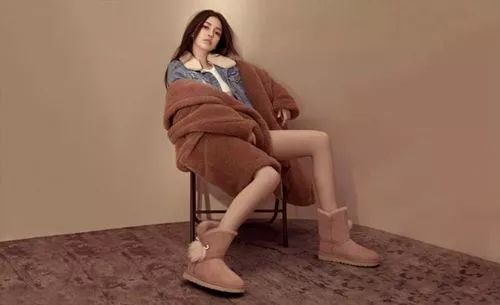 Angelababy在拍摄UGG的广告时也选择了这款大衣,焦糖色和画报的秋冬气氛相得益彰,看起来就很温馨了。