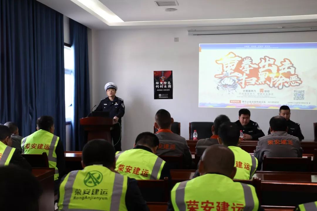 随后,宣传民警传达了“扫黑除恶”相关工作部署及各级领导指示精神,对涉黑的犯罪特征和重点打击的黑恶势力类型进行了宣讲,告知了举报信箱、电话等举报途径,鼓励大家积极踊跃参与到“扫黑除恶”专项行动中来。
