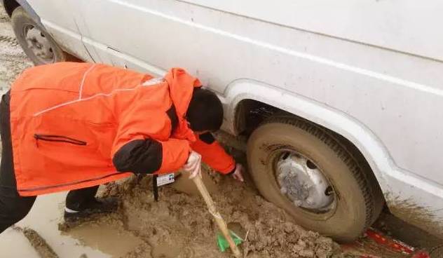 当客户回乡途中车子陷入泥潭,查勘员用铁锹挖、用手推,总之,“再苦再难也不能让客户难”!
