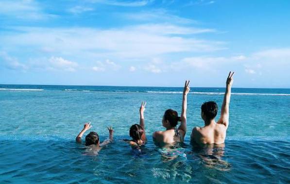 田亮一家去了马尔代夫,还不忘先拍温馨的家庭写真~~~