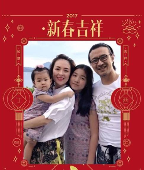章子怡抱着小醒醒晒出全家福给大家拜年。