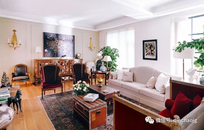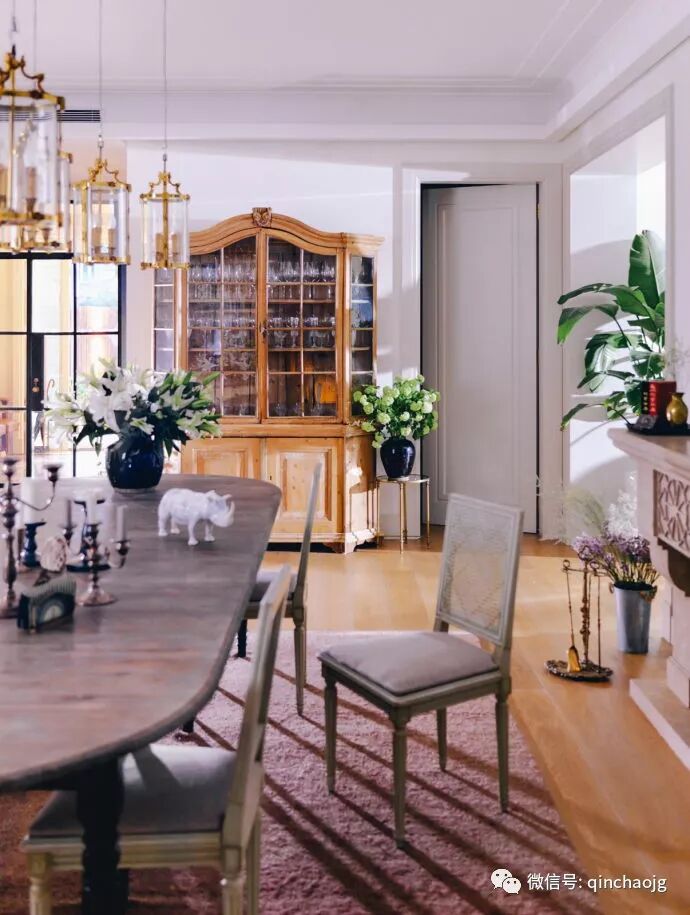 装饰画带点旧上海风情,搭配法式的旧物古董