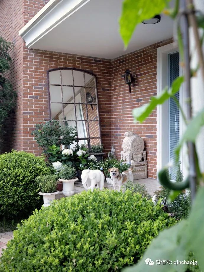 红色砖墙和玄关镜颇有几分三四十年代老上海的味道