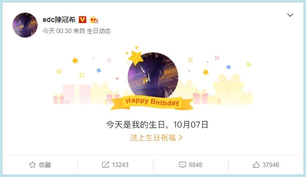 作为第一代“80后”,陈冠希也沉稳了下来,安安静静的度过了他的38岁生日。