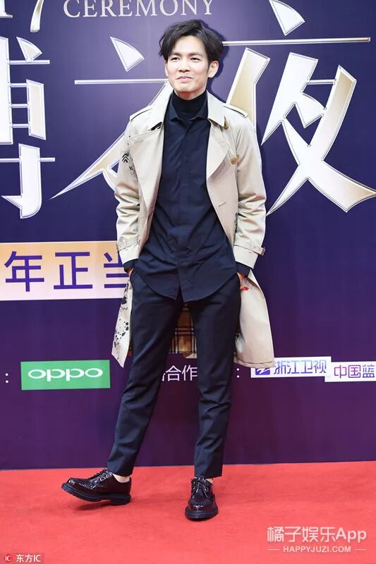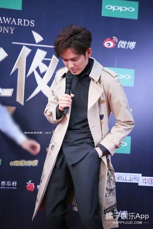 就拿昨天的微博之夜来说,钟汉良穿了一件卡其色的风衣,请注意,这件衣服是没有兜的: