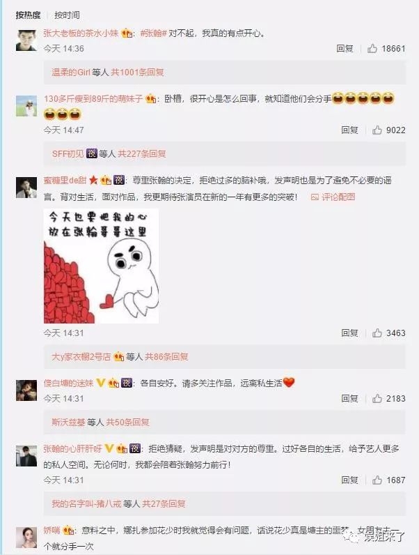 直到二人分手,大家才后知后觉,原来骂着骂着他们已经在一起三年了。可惜的是三年的时光终究无疾而终,不过对于二人分手一事,当初不看好的网友们在微博评论区一片狂欢,大家都表示太高兴了!