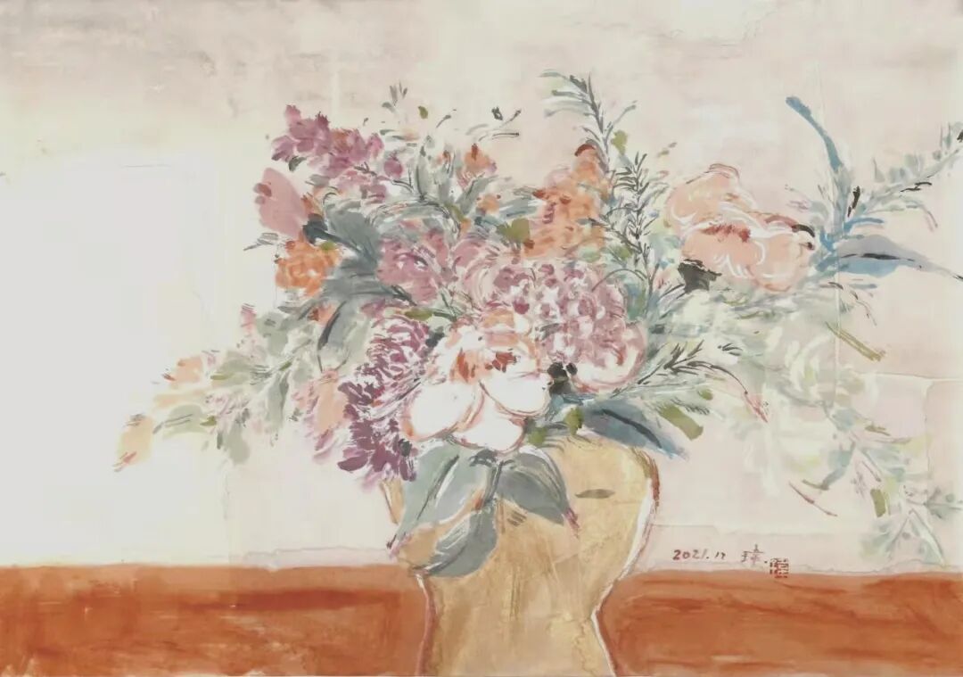 张玮 案头闻香 纸本设色 30cm×45cm