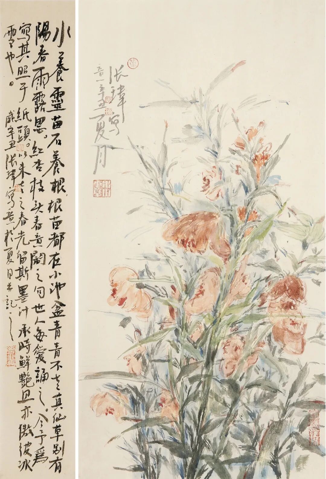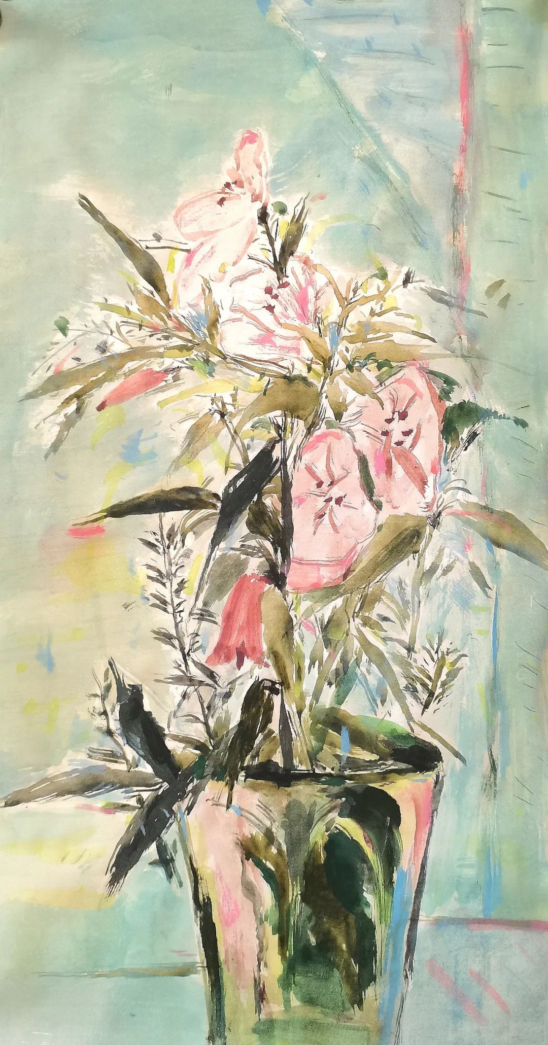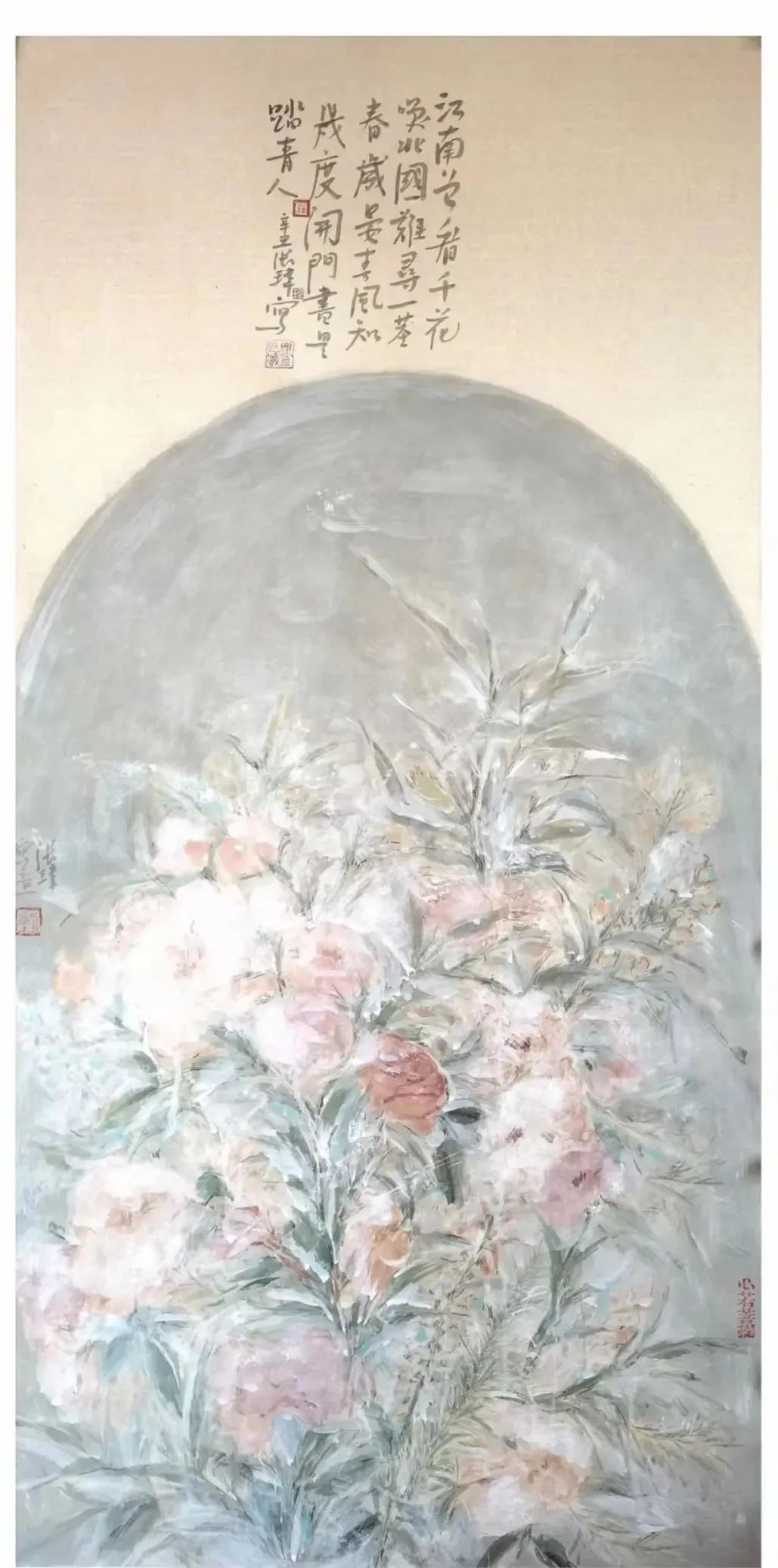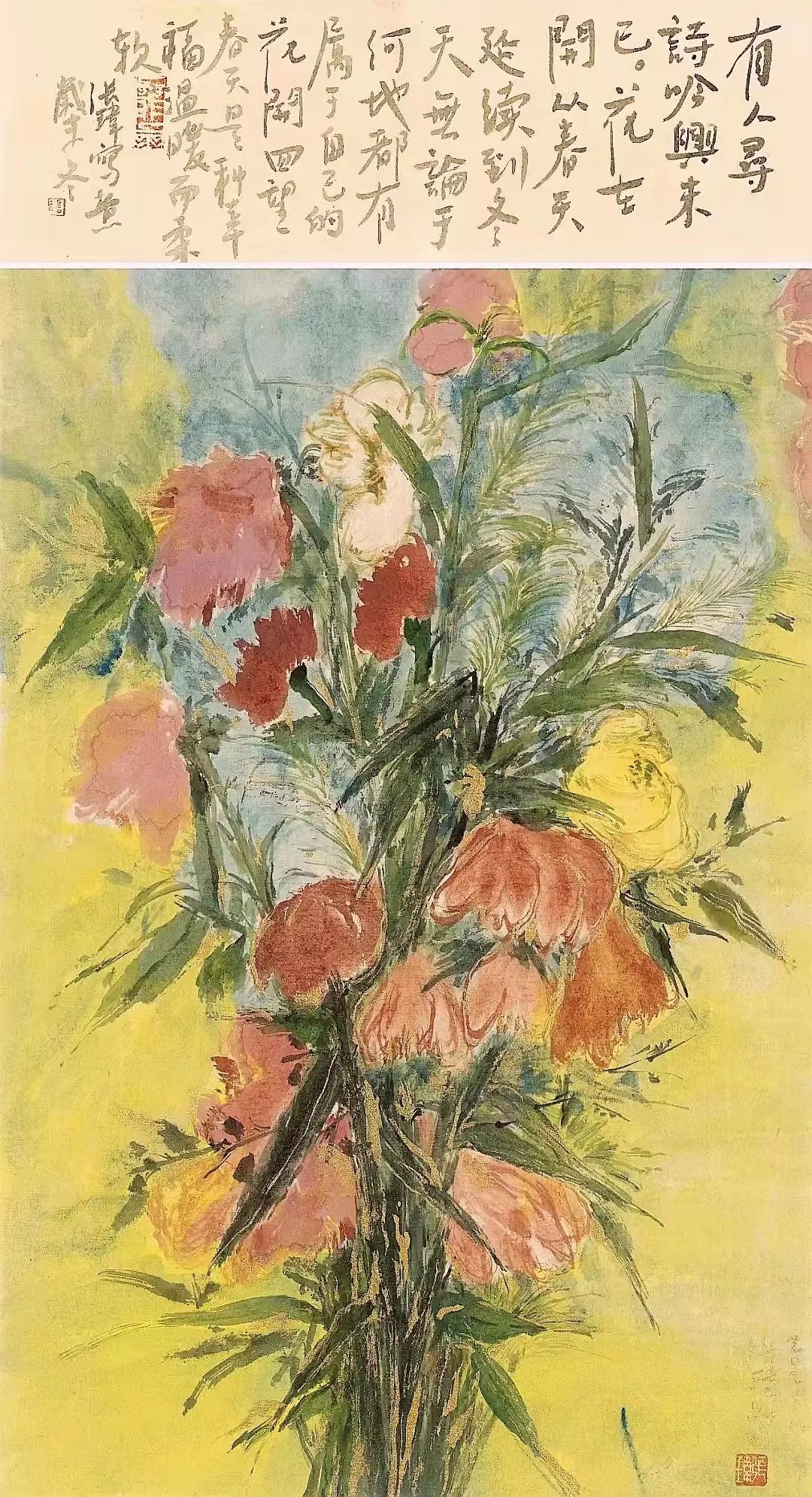 张玮 江南千花唤北国 纸本设色 140cm×70cm