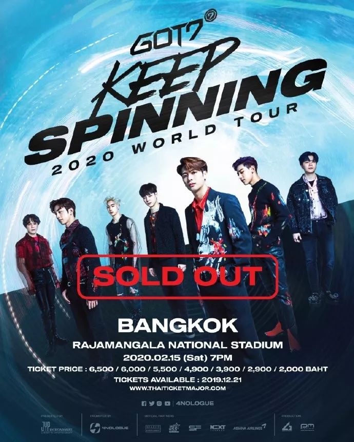 GOT7 2020.02.15泰国拉加曼加拉国家体育场6万人演唱会开票1小时52分全席售罄,同时JYP泰国方面预告“Good News Very Soon”,有望加场。