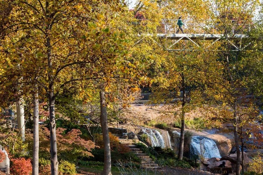 在大快朵颐之前,你可以先赏玩该市林荫街道上的诸多公共艺术作品,或是来杯手冲咖啡,再踏上长达 21 英里的沼泽兔步道(Swamp Rabbit Trail)单车之旅。