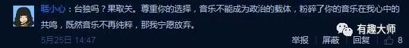 当然,也有些谢和弦原本的粉丝表示“果断取关”,比如这位网友就表示,“音乐不能成为政治的载体,粉碎了你的音乐在我心中的共鸣,既然音乐不再纯粹,那我宁愿放弃。”