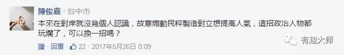但在一片喧嚣声中,也有台湾网友表示,“本来在对岸就没几个人认识,故意煽动民粹制造对立想提高人气,这招政治人物都玩烂了,可以换一招吗?”