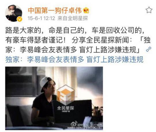 而这已经不是李易峰第一次出现违规行为了,去年就被卓伟拍到。