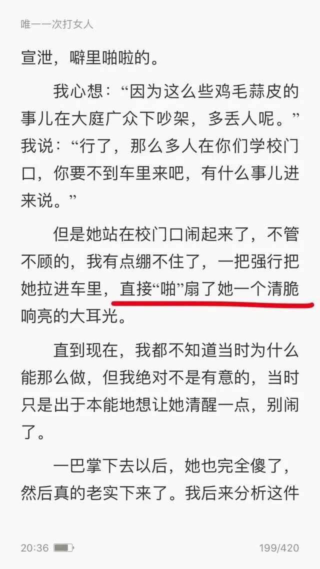 该章节有一部分内容为“唯一一次打女人”,在这一部分,郭涛记录了多年前他与当时恋人发生的一次争吵,原文称“扇了她一个清脆响亮的大耳光”。