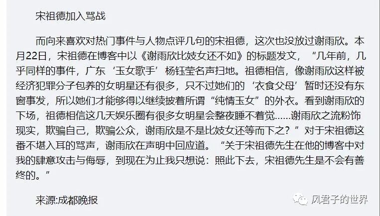 谢雨欣:曾和逃犯恋爱,被捧红不知男友真实名字 风君子的世界 内地女星 2022-04-19 22:44:51 723 创作不易,用心坚持,欢迎请BaGua喝几杯爱心咖啡!打赏并支持本文 打赏并删除本文 文:风君子点个关注不迷路,谢谢~~~011974年,谢雨欣出生在合肥的一个家庭,安徽地方特产之一是黄梅戏,耳濡目染,谢雨欣后来就去了安徽黄梅戏学校。杨钰莹和谢雨欣都是歌坛的清纯玉女形象,两人的事业和人生轨迹,有着惊人的相似之处。杨钰莹比谢雨欣大三岁,彼时的杨钰莹已经在歌坛崭露头角。1990年,杨钰莹发行首张专辑《爱我多深》,销量达到了18万张,凭借甜美的嗓音,杨钰莹在南方的音像市场上有了一定的地位。而另一个和谢雨欣有着千丝万缕联系的逃犯沈俊林,他比谢雨欣大17岁。这时正化名潘顺宝,这个20来岁的年轻人,聪明地发现了此时市场需求远大于供,他承包了家用电器厂,赚了大把的银子,在当地有一定的名气。1985年,他涉嫌诈骗被羁押,后来患病,住院治疗的时候,这位胆大包天的小伙子,面对即将到来的牢狱生涯,对自由的渴望,他一咬牙一跺脚,住院的时候抓住了一个机会逃跑了,从此走上了20年的逃亡生涯。这位小伙子化名潘顺宝,逃亡路上流落多地,刚开始小心翼翼,都只是做小生意,例如贩卖水果等等,有时候听到一丁点风吹草动,就心虚地拎起来篮子想跑,后来又镇定下来,不自然地笑笑后,继续做他的生意。早在1982年,他结婚,并且有了一个女儿,逃亡生涯上,他和妻子联系并不多,但是常常想起来自己的女儿。有一次他卖水果的时候淋雨后得了重感冒,躺在租住的小房子里,悲从中来,潸然泪下。2001年,亿万身家的潘顺宝把自己的女儿送到国外读书。他逃亡路上,通过卖水果,积攒了十几万,胆子逐渐就变大。1990年他去了北京,开始倒卖电视机,就这样持续到1993年。彼时的这些人,各有各的辛苦,但是都想不到自己的命运会这么曲折。02如果正常发展,谢雨欣从黄梅戏学校毕业后,可能会加入地方戏剧团,成为一名黄梅戏艺人,结婚生子,也许会有一些名气,想来应该会比较幸福。1993年,即将从黄梅戏学校毕业的谢雨欣,突然传来噩耗,母亲从糖尿病变成了尿毒症。谢雨欣离开学校,去医院照顾自己病重的母亲,和天底下大多数母亲一样,都希望在自己的有生之年看到女儿有个好的归宿。谢雨欣曾经在访谈中说,她母亲当时最大的愿望就是她能嫁出去,看看她能嫁个什么样的人。乖巧懂事的谢雨欣为了让母亲能高兴起来,就这样认识了她的第一个男友,后来成为她的老公。但是这段婚姻才刚刚过去三个月,母亲就去世了,而此时的谢雨欣却已经有了身孕。对于当时的谢雨欣来说,短短的时间里,她就经历了结婚,生子,亲人去世,离婚,别人一生中可能都不会经历这么多,她短短的时间里,都经历了。这种心理上的冲击,对于一个年轻人,是很难接受的,用谢雨欣的话说,这些东西来得太快了,她还没真正弄明白,就匆匆结束了。谢雨欣的第一段婚姻,就在茫然和迷惑中过去了,糊里糊涂开始,糊里糊涂中结束,给她留下了一个女儿。彼时的杨钰莹已经在歌坛如日中天,发行的个人专辑销量过百万,和毛宁成为歌坛有名的金童玉女,一时间风光无限,羡煞旁人。而日后捧红谢雨欣的潘顺宝,不甘心于倒卖电视机,进入了证券市场,当时的证券市场刚刚开始,并不健全,他从证券市场上通过非正常手段,赚走了大量的钱财,春风得意。03离了婚之后的谢雨欣,心里很难受,她琢磨了下,不能这么颓废下去,生活还得继续。于是,她选择了去海南散散心,海边的风,也许会让她更开心。在海南,谢雨欣在'望春楼"担任驻唱歌手。有一次谢雨欣请现场的观众和她合唱《夫妻双双把家还》。台下顿时都开始起哄,有一位勇敢的大哥跳了出来,本以为他高歌一曲,但是他理直气壮地说,他不会唱。然后他说,我会回去学的,明天再来唱。这位大哥就是潘顺宝,当时正在海南成功公司任职,两人像电影里的桥段一样认识了。那个时代里,声音甜美,青春美丽的谢雨欣,吸引了很多富豪的眼睛,但是在第一段婚姻里受到伤害的谢雨欣,对很多人都不信任,她都拒绝了这些人。1995年3月18日,她21岁的生日。潘顺宝亲手制作了生日礼物,来到了谢雨欣面前,他说,这是我第一次送给你生日礼物,你什么都有,我就自己制作生日礼物送你,我把我的心给你。这段深情的话,令谢雨欣很是诧异,但是谢雨欣还是拒绝了他。时间是个好东西,可以证明一切的真心,以及虚情假意。沈俊林并没有因为谢雨欣的拒绝而退步,他还是每天都来酒吧捧场,听谢雨欣唱歌。一来二去,两人就熟悉了起来,不谈恋爱,也不妨碍两人成为好朋友。1996年年底,潘顺宝准备去北京打拼了。临走前,他还特意和谢雨欣道别。并且说出了一些藏在心底的话。他说,依照谢雨欣的条件,她可以成为一名歌星,而不是仅仅在酒吧驻唱的歌手,而且,他有能力,他也愿意捧红她。潘顺宝给谢雨欣一个选择的机会,如果她愿意跟着他去北京,她一定会成功的。面对着这个机会,谢雨欣没有拒绝,也没有跟着他去北京。这个时候的谢雨欣,依然在犹豫,这个男人,究竟是否值得信任。彼时的杨钰莹,逐渐淡出歌坛,这是她第一次隐退,后来我们才知道,原来那时候她和赖文峰谈恋爱。在杨钰莹的心里,这段恋爱,就和普通人一样甜蜜温馨,他们会在乡下散步,杨钰莹甚至都想过他们以后会结婚,会生几个孩子。04潘顺宝回到北京,本以
