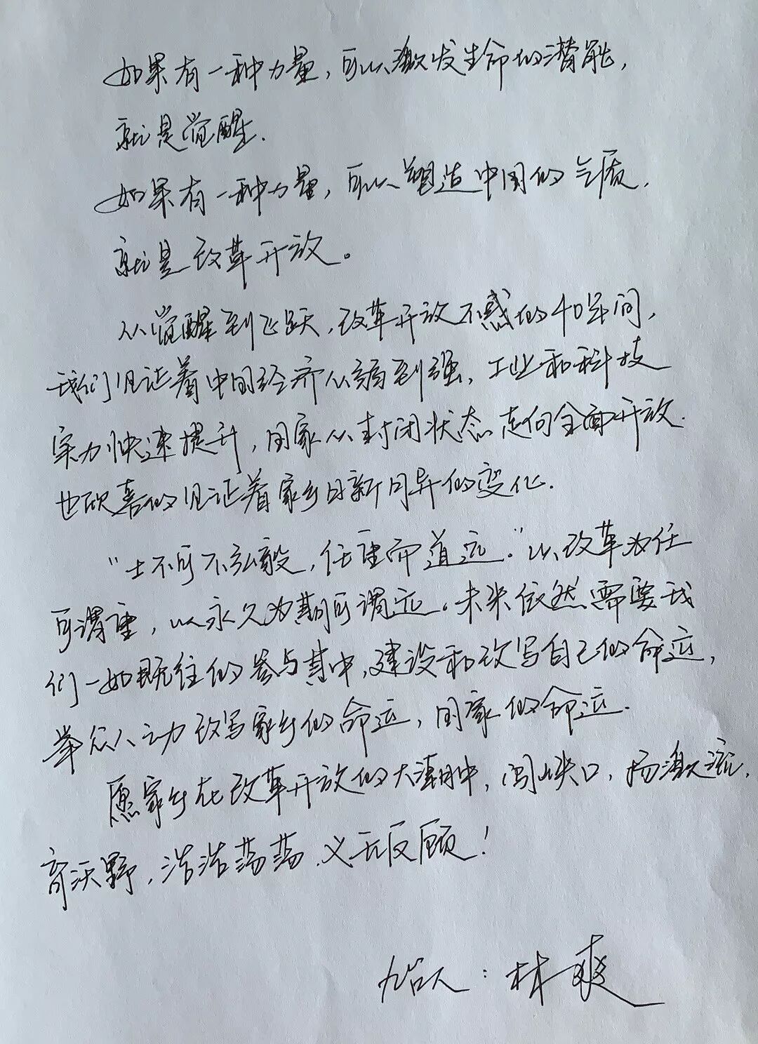 “士不可不弘毅,任重而道远。”以改革为任可谓重,以永久为期可谓远。未来依然需要我们一如既往的参与其中,建设和改写自己的命运,举众人之力改写家乡的命运、国家的命运。愿家乡在改革开放的大潮中,闯峡口、扬激流、育沃野,浩浩荡荡,义无反顾。
