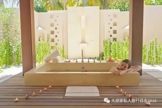 一次心灵和身体的放空与享受。水疗室在植被深处,用大理石和木材搭建,本身就是一道风景。此处不仅水疗,还可以蒸桑拿来放松。