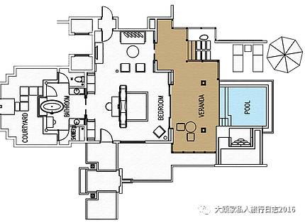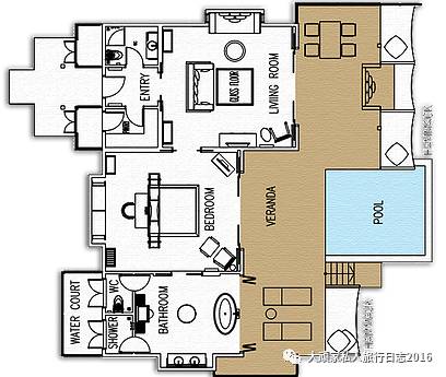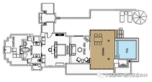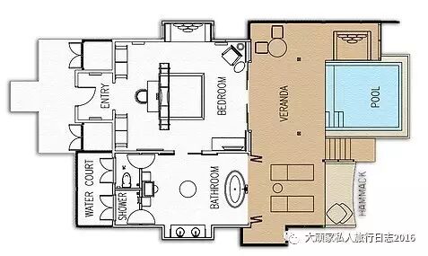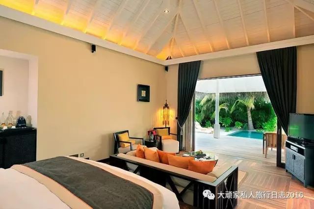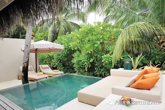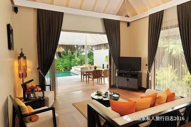 ★岛内都是橘色系的,跟蓝色大海搭配,颜色亮丽,沙屋前院+后院,有泳池,有露台,有幽幽的树林,有露天浴台,还有小动物作陪