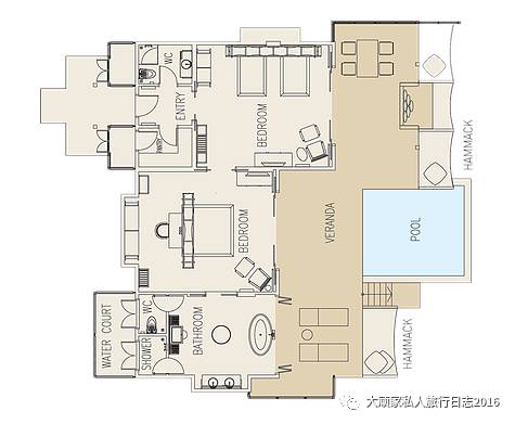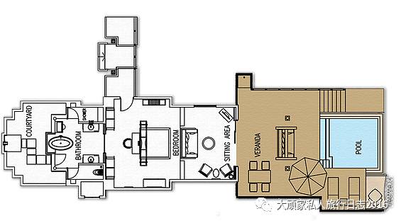 这些宽敞的套房适合家庭的度假,套房有宽敞的卧室和一个起居室,每间套房有私人户外露台、泳池。