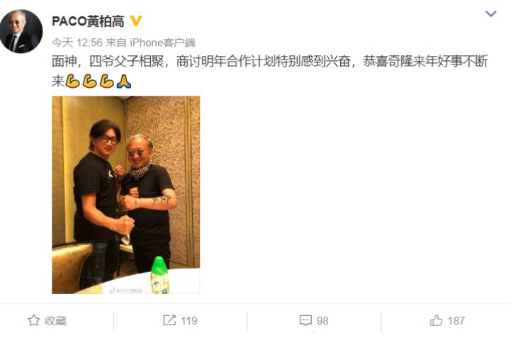 而另一方面,就在前两天,香港的经纪人黄柏高,在自己的微博上晒出了与吴奇隆的合影,在合影当中,我们可以看到吴奇隆的照片,几个月不见,吴奇隆的肚子好像是大了一圈,在以往是很少见的,这又是怎么回事儿呢?吴奇隆和刘诗诗这么凑巧,两人婚后肚子都变的大了起来,难道是两人婚后幸福指数增加了,所以吃胖了吗?