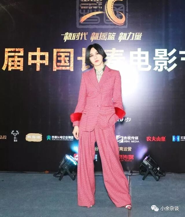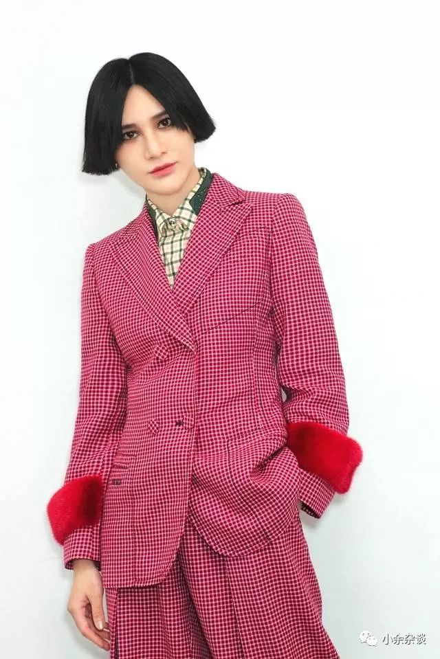 尚雯婕的长相是很中性的,偏男人的面孔很酷,然后头发也是很短的才到耳朵的中分发型,这种发型和她的脸结合结合起来真的很man,然后袖口处的两团红色的毛绒绒的也是很有看点的。尚雯婕穿上这身很有粉色的西服之后,感觉整个人都粉嫩了起来呢。