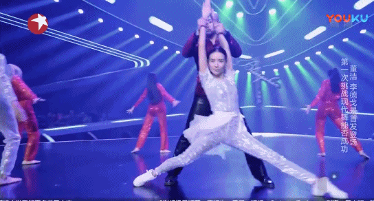 ▲几个专业动作下来,就知道董洁的舞蹈底子不是盖的,跳舞气场好强。