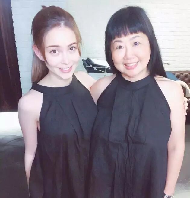 5.昆凌晒出同妈妈的合照,两人身穿黑色长款母女装,昆凌绑着利落的马尾,笑容甜美,同妈妈亲密地挨在一起。昆凌妈妈一头披肩长发和齐刘海造型,被网友调侃“曹格女儿同款”。