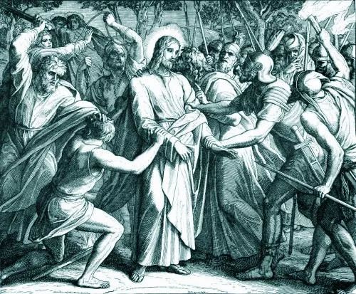 耶稣对他们说:“你们带着刀棒出来拿我,如同拿强盗吗?我天天教训人,同你们在殿里,你们并没有拿我;但这事成就,为要应验经上的话。”