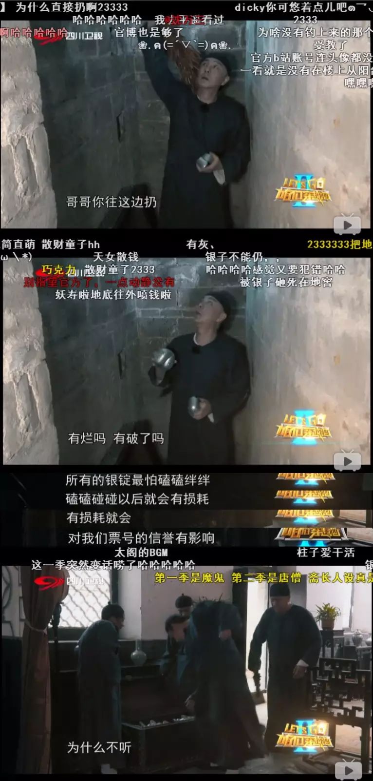 别以为转到室内录就轻松了……张国立会让嘉宾们爬到几米深的地窖里运银子,还不许用扔的,因为……扔了银子会有损耗,得老老实实搬!干的都是体力活!