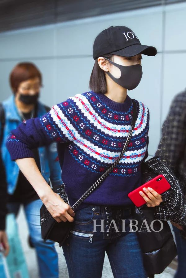 北欧风毛衣本季穿也不过时。搭配可以参考宋茜,她用蓝色调统一全身,并将衣摆被塞入裤子中,非常显瘦。