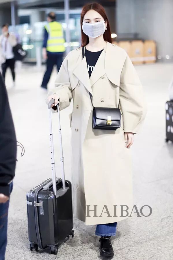 张钧甯2018年10月19日机场街拍:由北京前往青岛